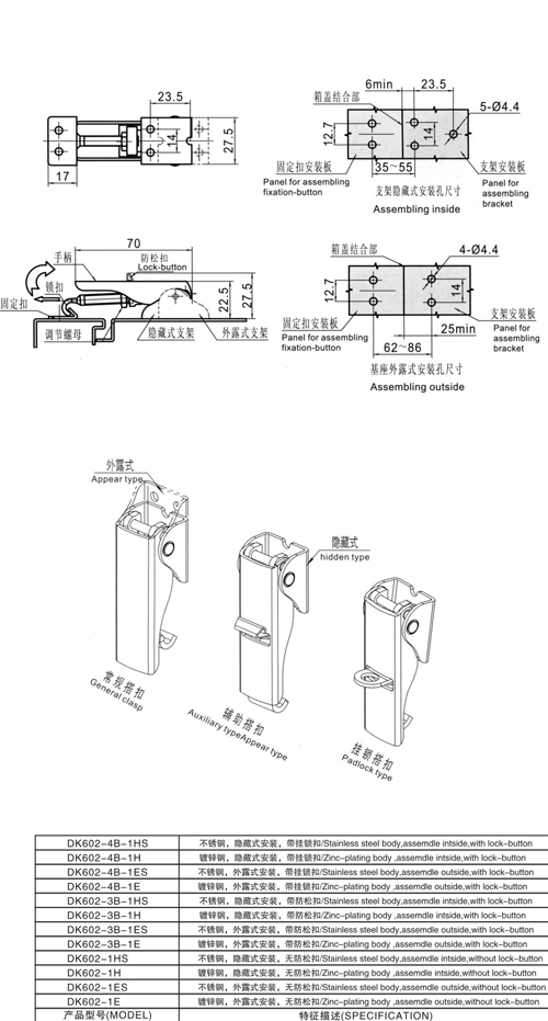 3.結構功能:翻蓋(gai)式搭扣(kou);翻蓋(gai)通過(guo)按扭(niu)固(gu)定(ding);通過(guo)調節螺(luo)桿可控(kong)制扣(kou)緊力;